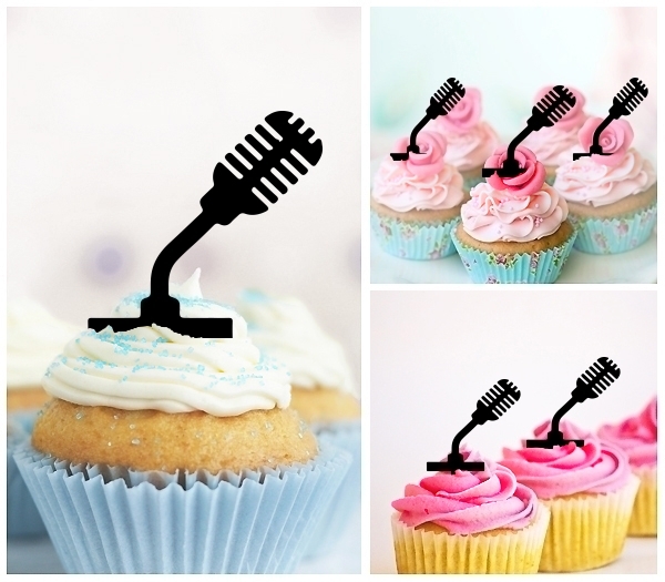 TA1244 Vintage Microphone Interview Cupcake Toppers for Party Decoration