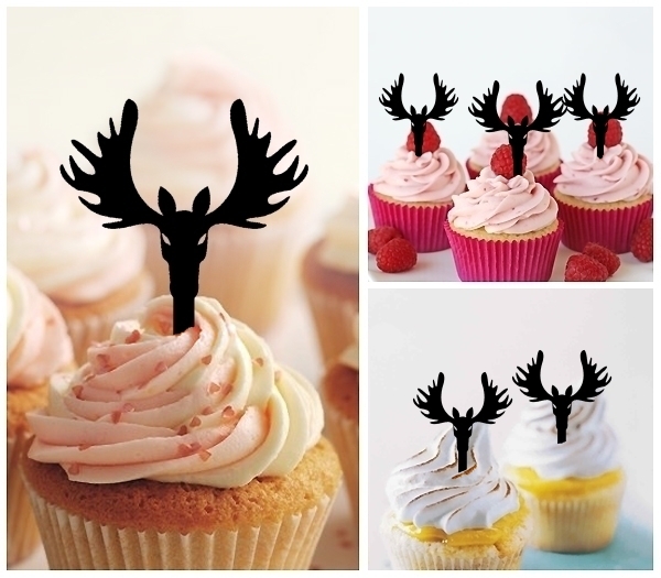 TA0392 Deer Moose Head Cupcake Toppers for Party Decoration