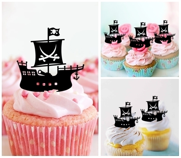 TA0403 Pirate Ship Cupcake Toppers for Party Decoration