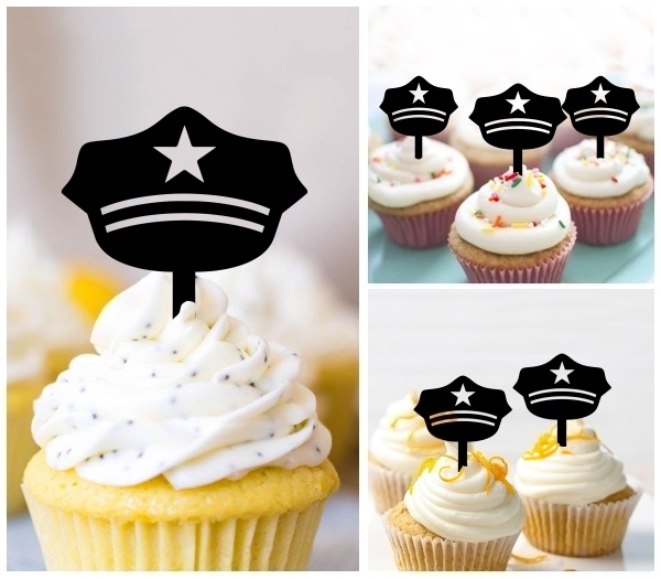 TA0926 Police Hat Cupcake Toppers for Party Decoration