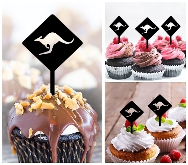 TA1227 Kangaroo Warning Sign Cupcake Toppers for Party Decoration