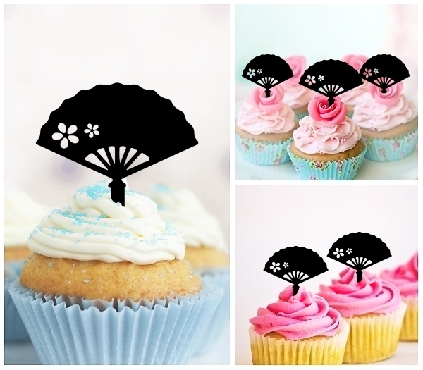 TA0671 Japan Hand Fan Sakura Cupcake Toppers for Party Decoration