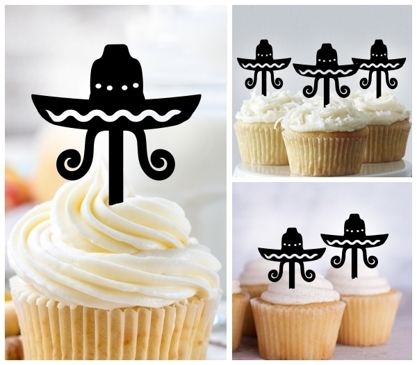 TA0915 Mexican Sombrero Hat Moustache Cupcake Toppers for Party Decoration