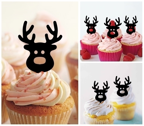 TA0972 Cute Reindeer Xmas Cupcake Toppers for Party Decoration