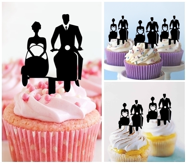 TA0219 Sidecar Wedding Couple Cupcake Toppers for Party Decoration