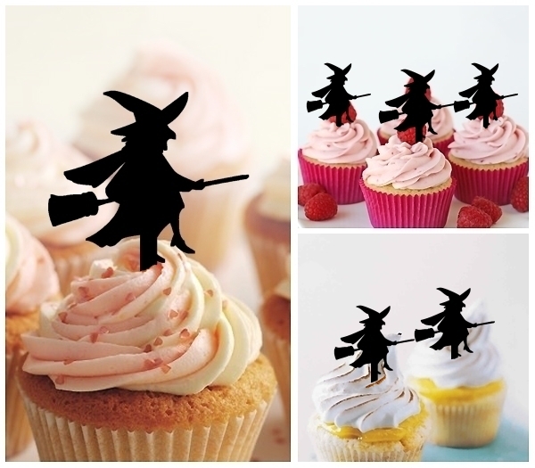 แม่มดบนไม้กวาด อะคลิลิกสำหรับตกแต่งคัพเค้กงานเลี้ยง