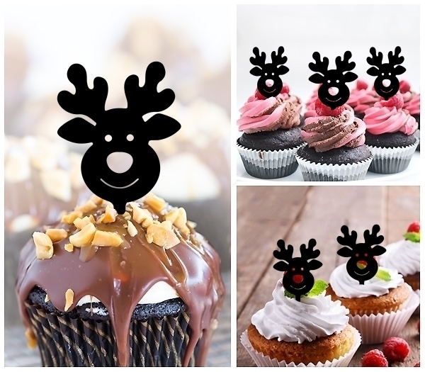 TA0977 Cute Xmas Reindeer Cupcake Toppers for Party Decoration