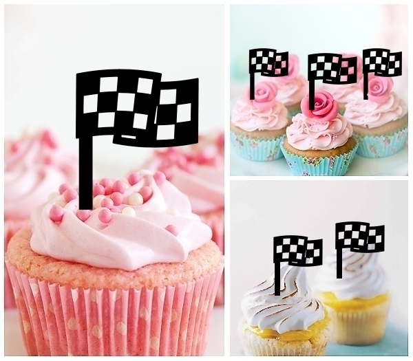 ธงตาหมากรุก อะคลิลิกสำหรับตกแต่งคัพเค้กงานเลี้ยง