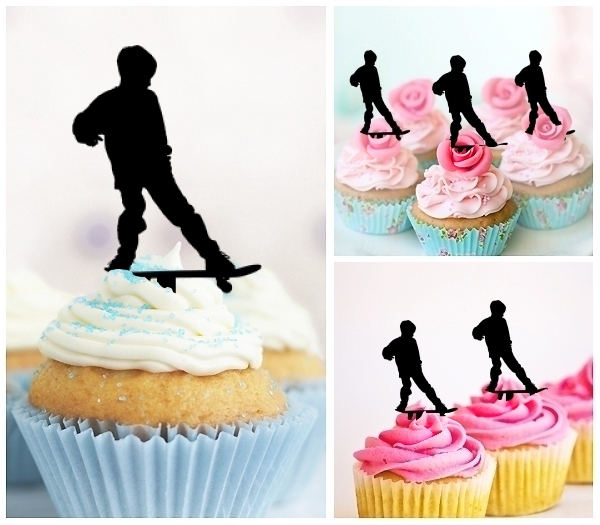 เด็กชายเล่นสเก็ตบอร์ด อะคลิลิกสำหรับตกแต่งคัพเค้กงานเลี้ยง
