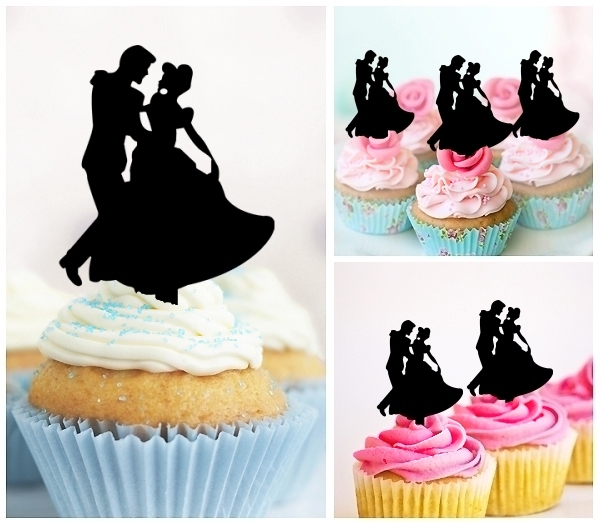 TA0234 Prince and Princess Wedding Couple Dancing Cupcake Toppers for Party Decoration