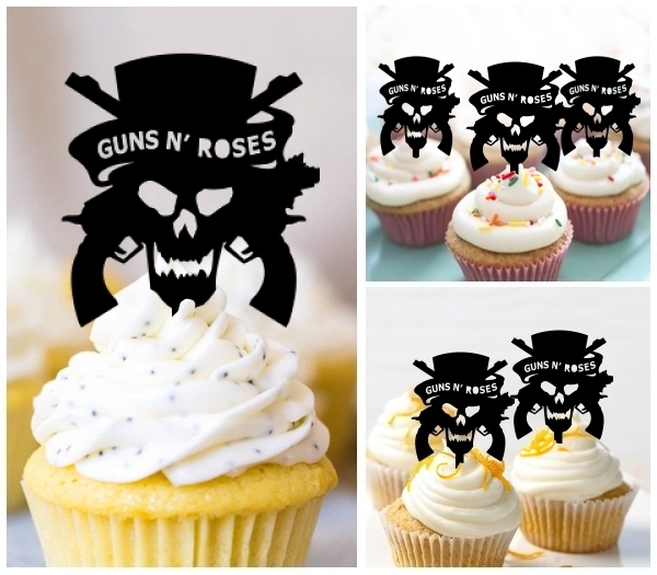 TB0006 Guns and Roses Cupcake Toppers for Party Decoration