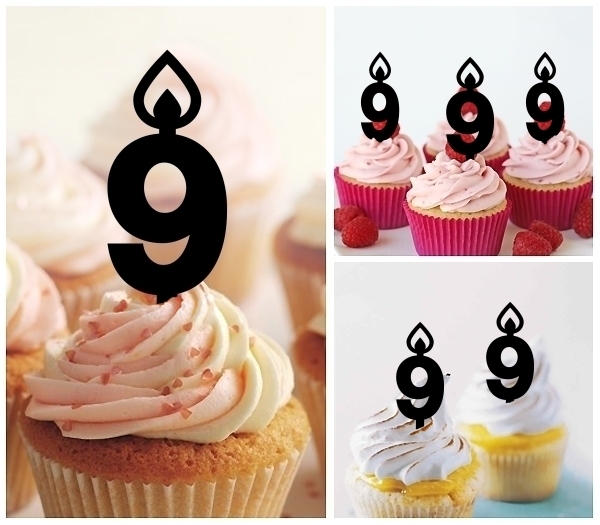 TA0910 Number Nine 9 Candle Cupcake Toppers for Party Decoration