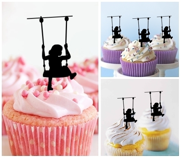 TA0180 Kid and a Swinging Chair Cupcake Toppers for Party Decoration