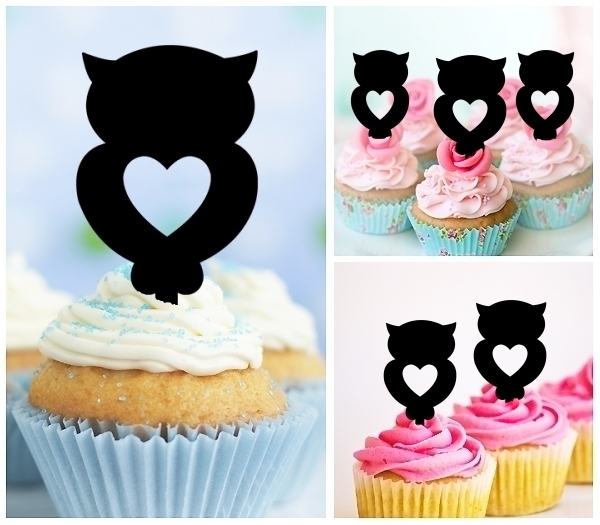 TA0228 Cute Heart Owl Cupcake Toppers for Party Decoration