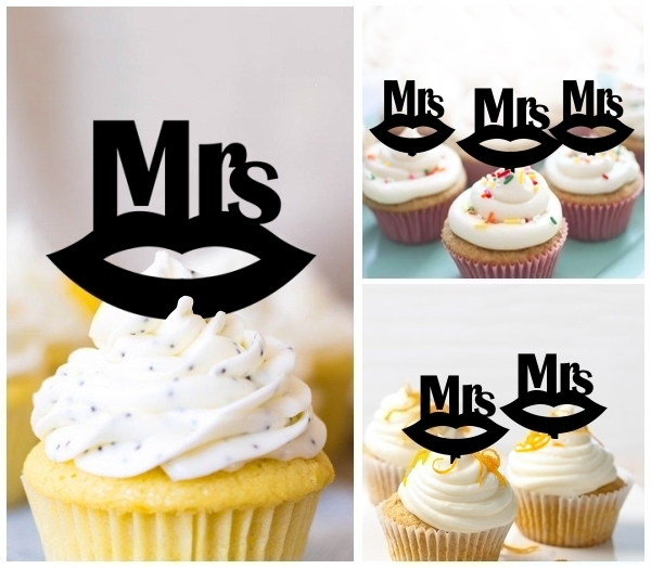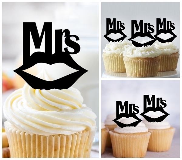 TA0245 Mrs Wedding Kiss Lip Cupcake Toppers for Party Decoration
