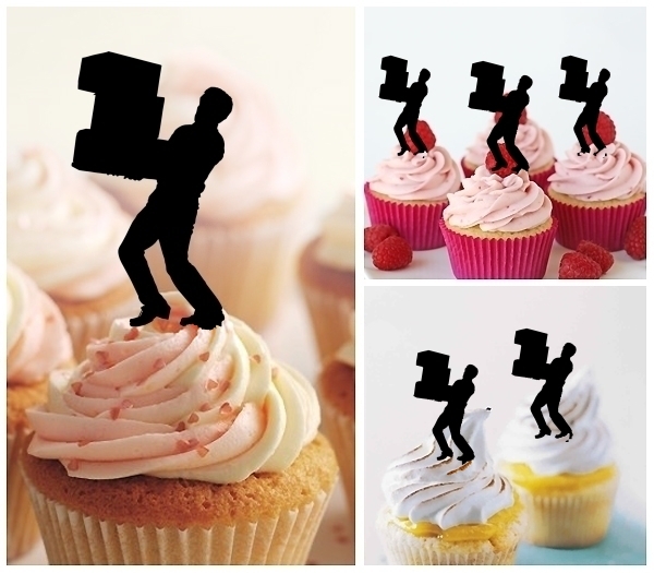 TA0362 Delivery Man Dropping Packages Cupcake Toppers for Party Decoration