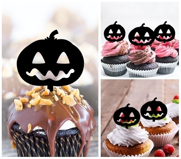 TA0377 Halloween Pumpkin Jack O Lantern Cupcake Toppers for Party Decoration