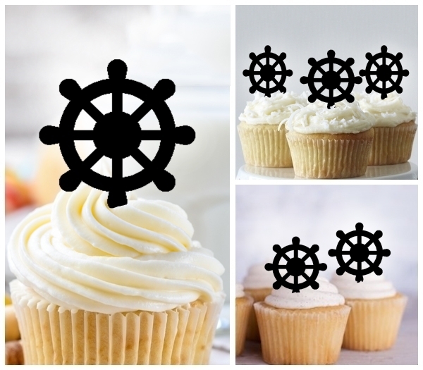 TA0415 Ship Wheel Cupcake Toppers for Party Decoration