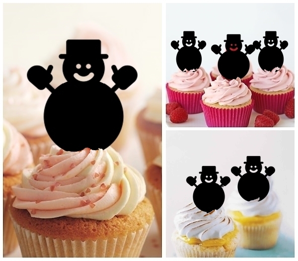 TA0422 Snowman White Christmas Cupcake Toppers for Party Decoration