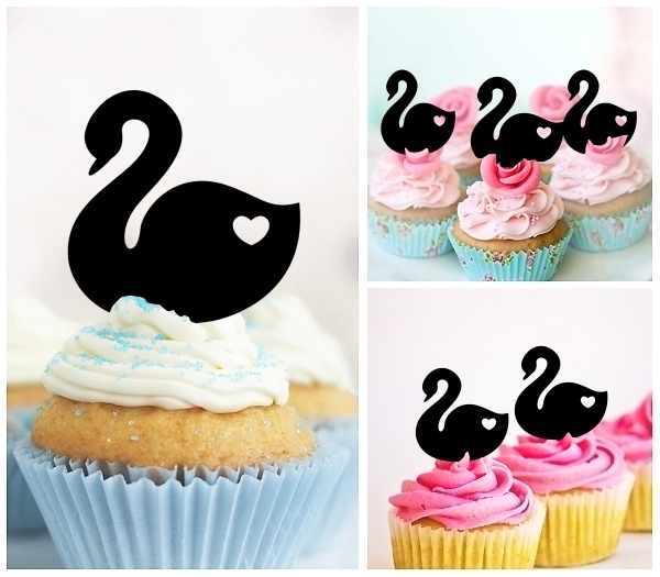 TA0431 Swan Love Heart Cupcake Toppers for Party Decoration