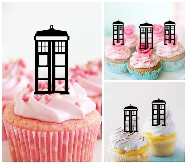 TA0433 Telephone Box Cupcake Toppers for Party Decoration