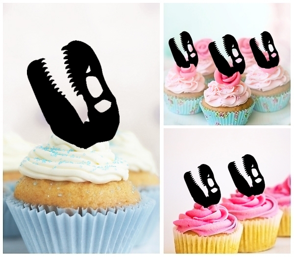 TA0434 T-Rex Head Fossil Cupcake Toppers for Party Decoration