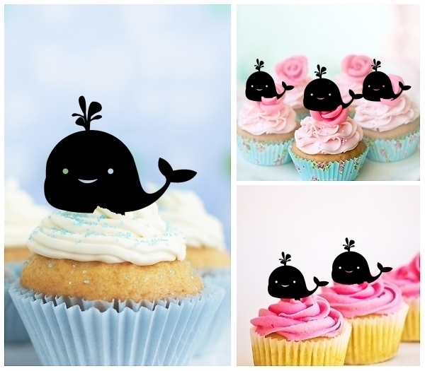 TA0438 Smile Whale Cupcake Toppers for Party Decoration
