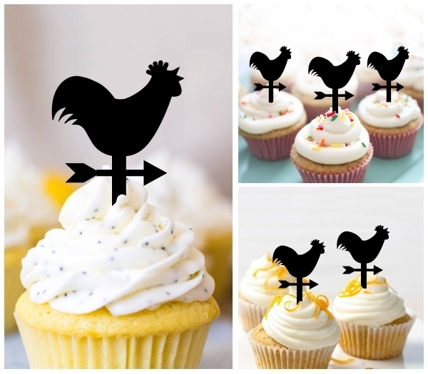 TA0566 Farm Rooster Weathervane Cupcake Toppers for Party Decoration