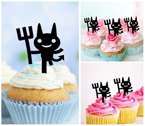 TA0578 Halloween Cute Devil Holds Pitchfork Cupcake Toppers for Party Decoration