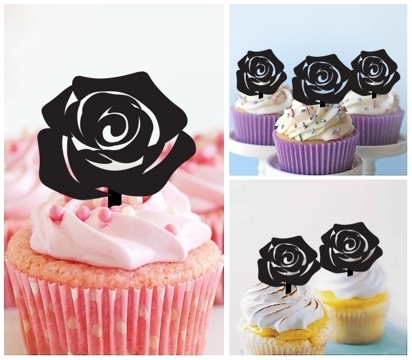TA0739 Rose Flower Flora Cupcake Toppers for Party Decoration